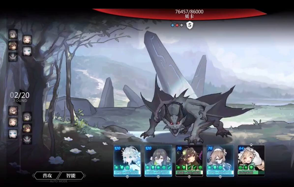boss速度较慢(小于50),队伍把南宫、雪儿调速到首位就行,因为有祭坛回血,默认满状态开打。南宫按回合释放20物,30火,80物,星见上buff接普攻,莉莉重砍,争取2轮带走。