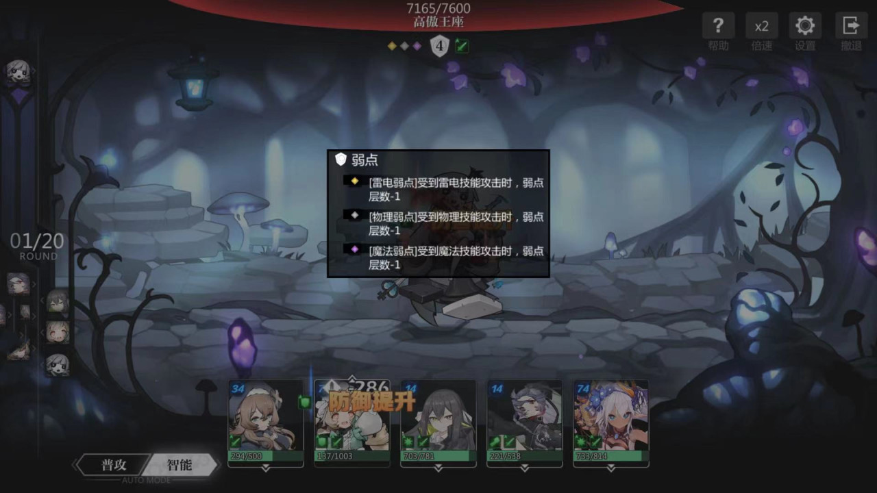 通过选择战斗力超强的人偶进行上阵挑战大boss,可以看到高傲王座的血量非常厚,通过玩偶攻击到一定次数后,高傲王座的血量会自动恢复,可以观察高傲王座的弱点,弱点在于雷电弱点,当收到雷电技能攻击时,弱点层数-1,物理弱点,收到物理技能攻击时,弱点层次-1,魔法弱点,当收到魔法技能攻击时,弱点层数-1,通过不同的人偶进行攻击他的弱点项,可以快速的让血量骤减,当血量降低的速度快于血量升高的速度,即可最终挑战BOSS成功,即可继续前往路线,最终到达终点,获得相应的道具奖励。