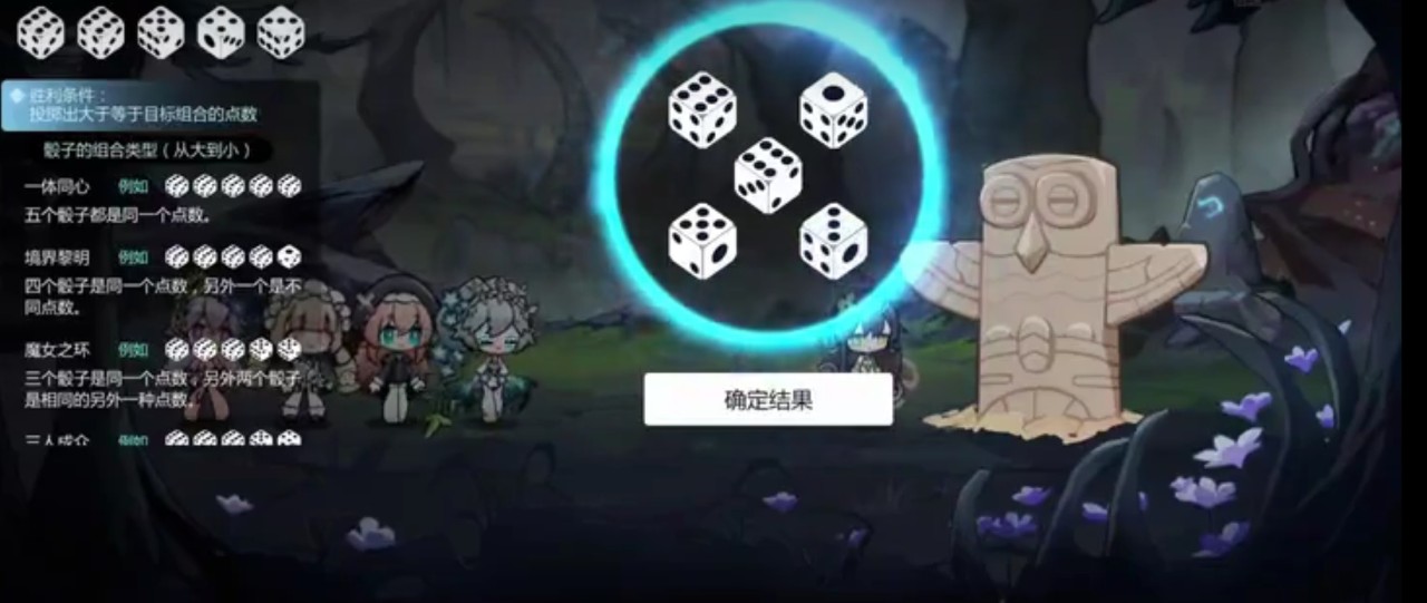 后三个是骰子投掷,玩家每次进行骰子投掷时,一定要按照左边的系统提示中显示的胜利条件来进行,这样才可以成功,否则是无法获得最后的奖励的。