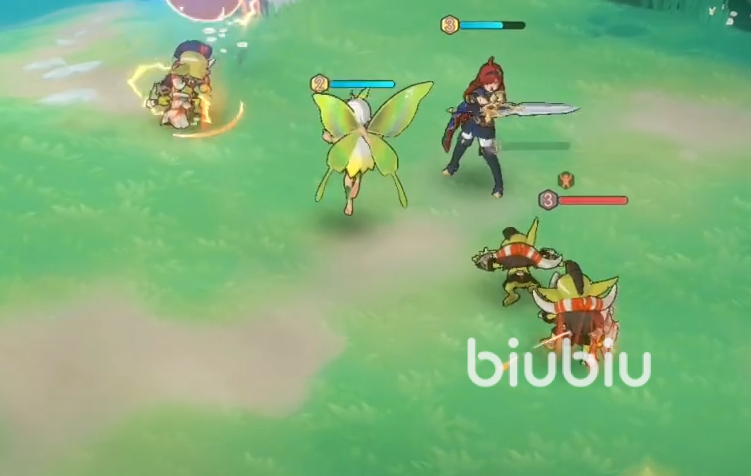 游戏一开始会有着一款过场动画,这段动画主要说的是男女主角是怎么认识的,在剧情之后咱们便会正式开启游戏,游戏刚开始咱们会遇到一个史莱姆敌人。这属于战斗教学,主要是让玩家们了解游戏战斗的方法。