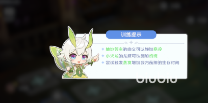 需要利用这角色带有灼烧伤害的技能去完成要求,按这么去做就可以完成所有有关元素反应的训练了;完成以后接下来是第二类训练,这类训练就是buff类型的训练,大家需要按要求去上buff,就比如要某位角色为某个角色上buff。