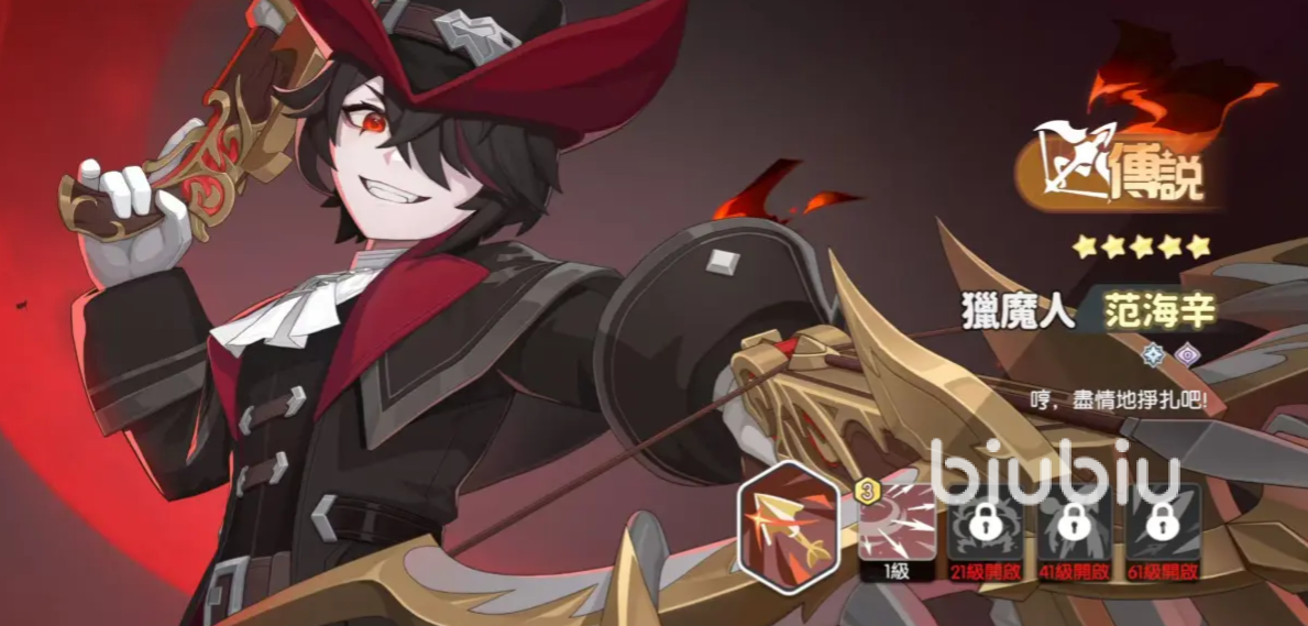 范海辛也是射手,定位比较偏向于副c,他的奥义释放时间比较长,会需要依赖攻速,不过伤害在高星后会有大幅度的提升,作为收割而言是非常好用的,前期抽到可以培养。
