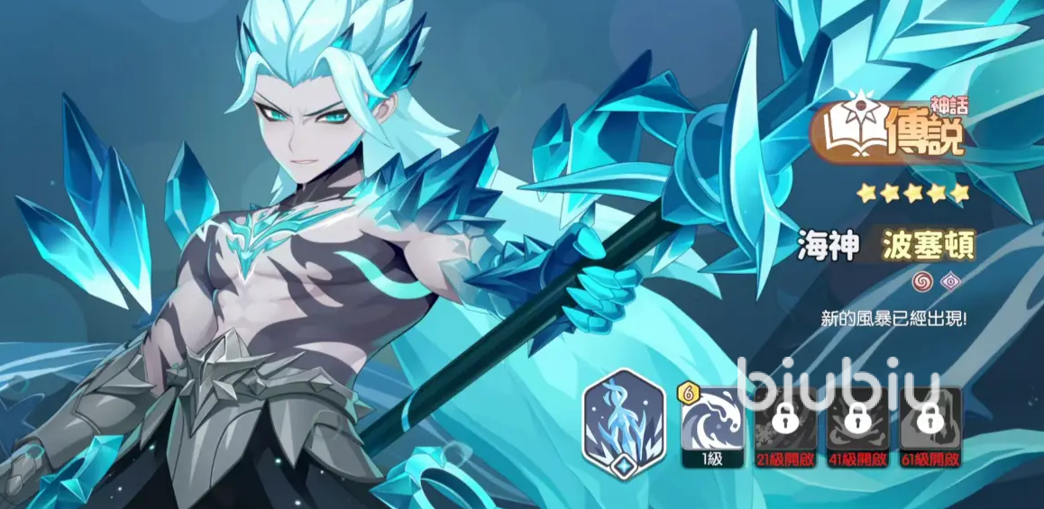 波塞顿是一位T0法师,他的所有技能都会带有寒冷效果,受到致命伤害后能免除这次死亡并回血,再加上开场击退效果,不管低星还是高星都非常好用,元素队的最强法师没有之一。