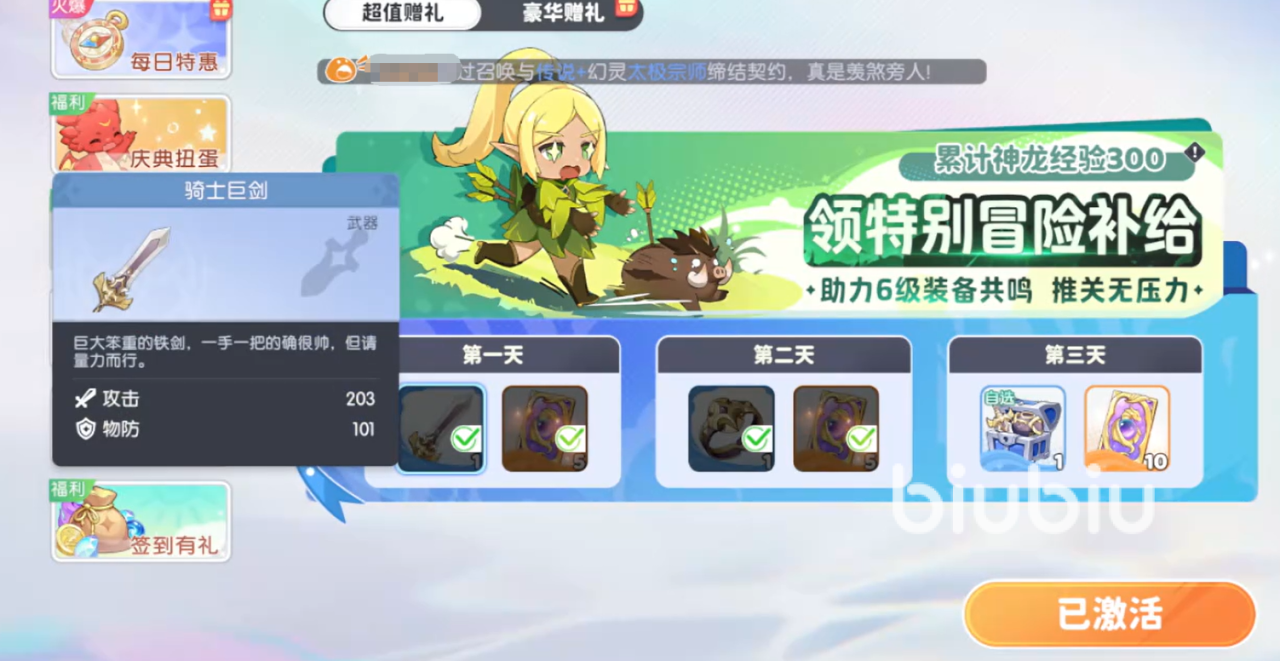 只不过各位想要获取这些装备的话,光靠常规的方式可行不通。这时就要参加游戏中的充值赠礼活动,在这个活动中需要经过氪金,当你的充值积分达到一定程度之后,就可以在三天之内领取这些装备,可以直接佩戴。