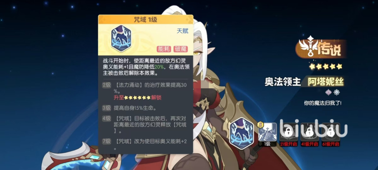 在目前所有牧师类型的角色中,排名第一的当属祈愿灯神山鲁佐德。这个幻灵的优点非常多,拥有超高的奶量,可以带来很强的安全感,天赋效果是所有技能都有几率连续生效两次,在升星到满级时,甚至可以连续生效三次。也就是直接连续开出三个大招,所以非常强势。自身除了提供治疗之外还带有减伤机制,配合奥术队的唤醒机制,叠加减伤buff,坦度甚至不亚于坦克,根本不惧对方的刺客。还能使自身和奥义消耗最多的一个友方目标,下次释放的奥义技能降低,所以非常全能,如果抽到了灯神可以直接用到退坑。