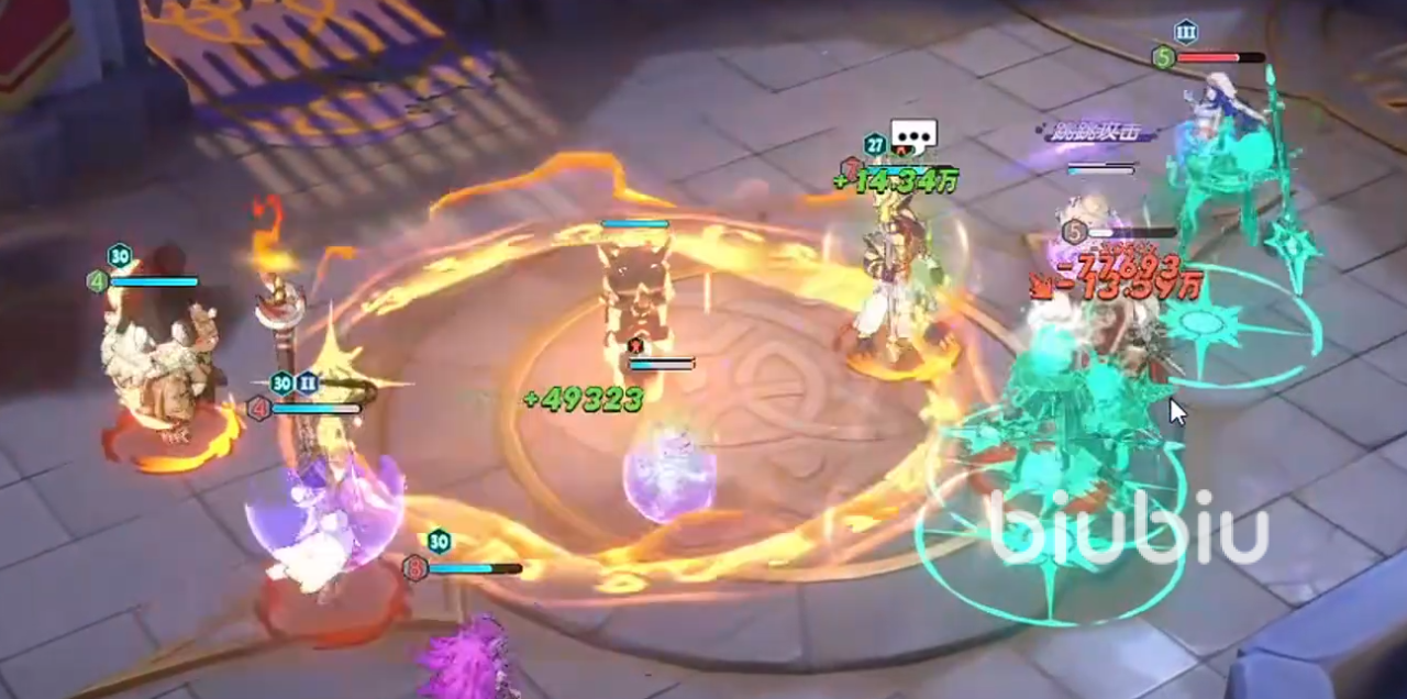 她的奥义“燕返”会进行连续2次的瞬身斩击,对矩形范围内的敌人分别打出650%物理伤害,并在两次斩击结束后分别对单体敌人施加2次牵引,技能释放期间自身会处于不可以选中的状态。