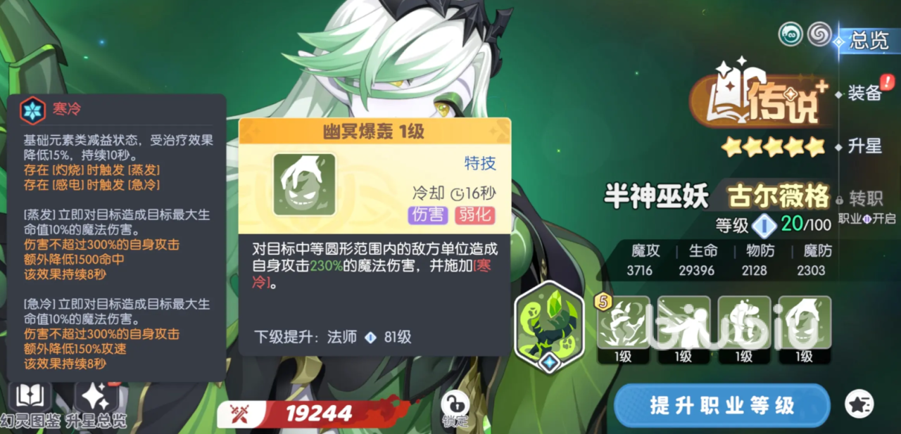 这个能和主c炎魔相互配合,让其在触发元素反应后减少奥义,半神巫妖除了带有禁疗外,还能给敌方施加寒冷的元素类减益状态,这一效果无论是触发蒸发还是急冷都造成目标最大生命值的10%的魔法伤害。