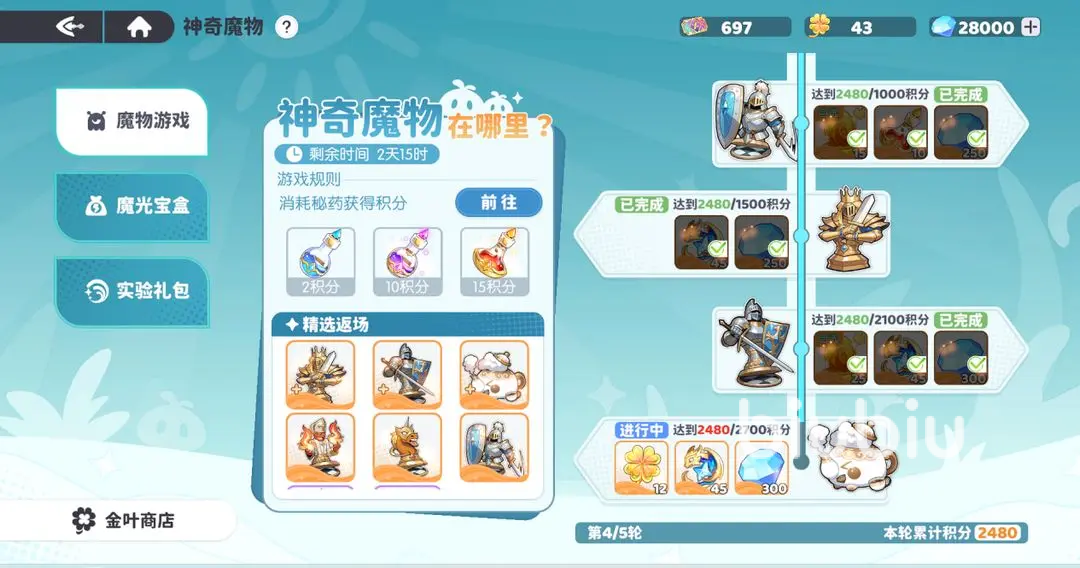 获取途径其实有很多种,大部分还是通过魔物炼制来获得,神话和其他一些稀有魔物的获取方式多种多样。魔物炼制是获取的核心抽取活动,可配合每周一次的轮换周活动,也就是“神奇魔物在哪里”来抽取,也能获得重要物品金叶子,当期有几率抽出新魔物,或前几期魔物复刻,需消耗红色命运魔药才能抽当期UP魔物。