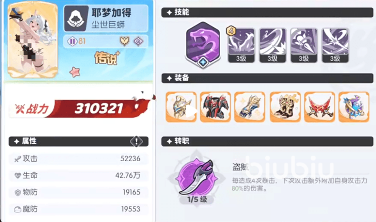 耶梦加得的天赋是每过9秒,对当前目标造成标已损生命值加自身攻击的物理输出,当自身同时拥有士气和斗志时会进入恩赐状态,处于恩赐时此招伤害会得到提升,她的奥义会选择单体敌人造成410%物理伤害并击飞。