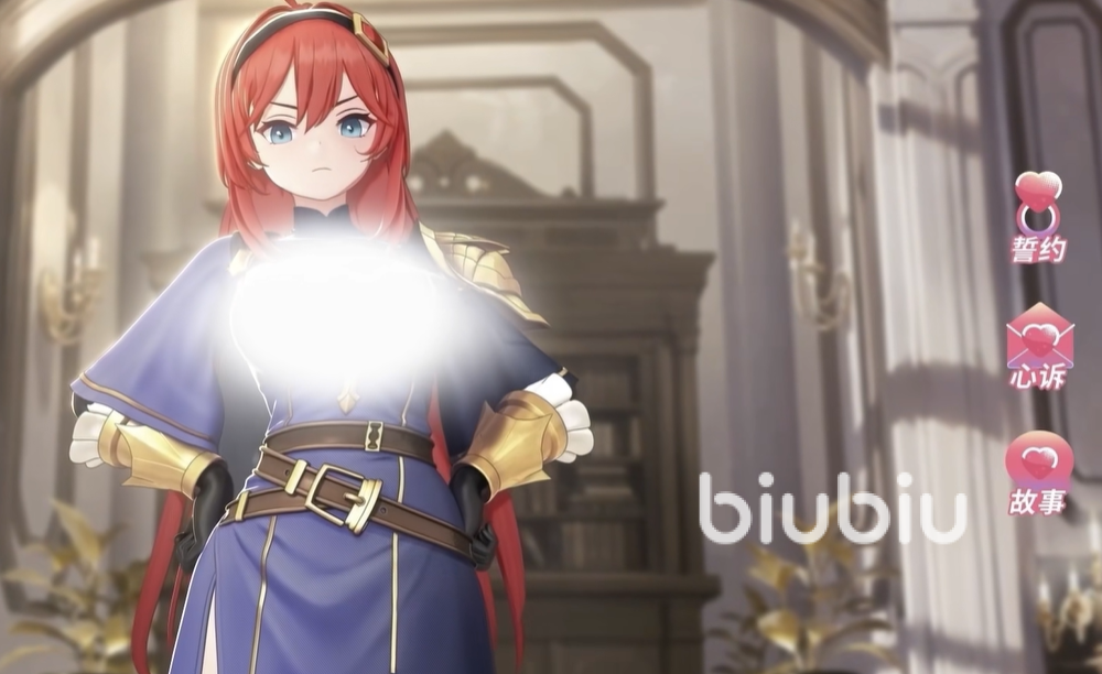 最后就是契约,这个相当于跟角色建立明确的关系了,这个阶段玩家会尝试跟角色进行友好交流,当角色脸红同意以后,两者就可以互相亲吻以及拥抱等亲密动作,这些动作可以提高整体的亲密度。