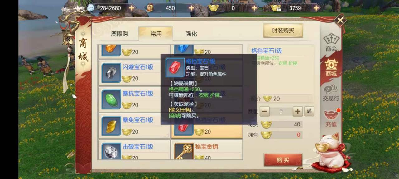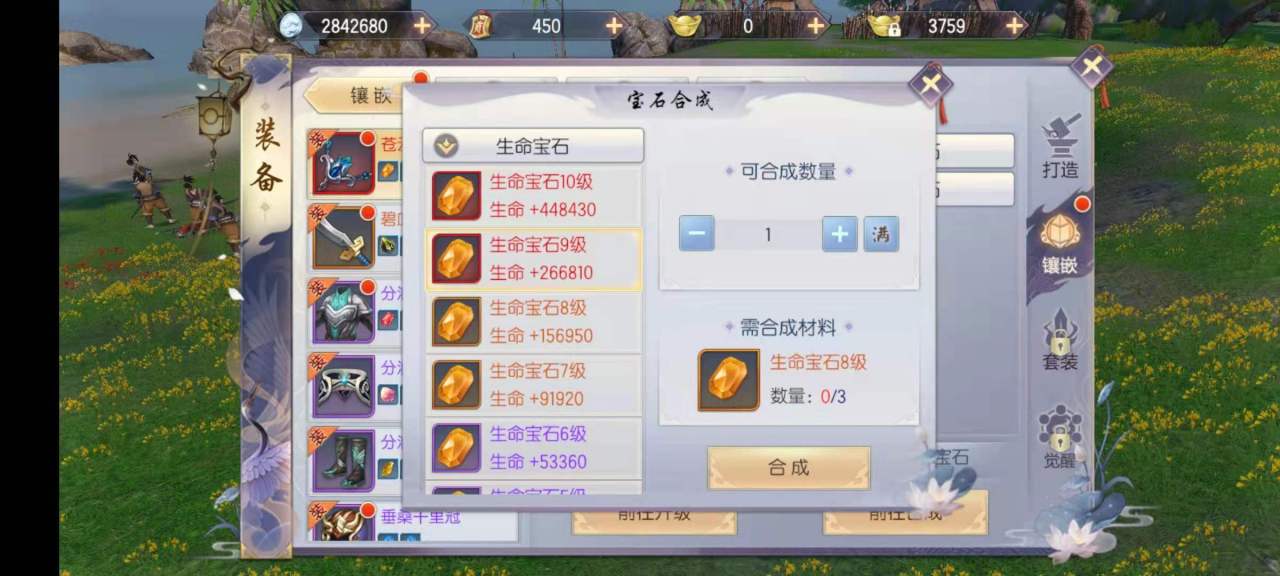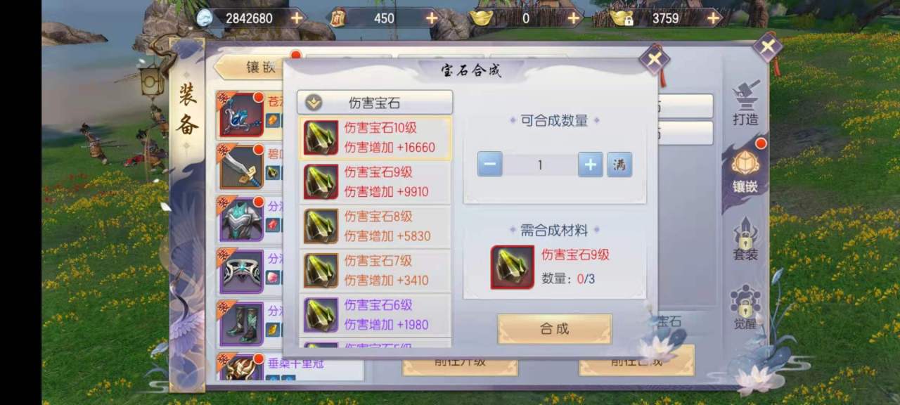 武器可以镶嵌的宝石是伤害宝石和命中宝石,伤害宝石直接提升的是伤害值,命中宝石提升的是攻击命中。如果不是越级去战斗的话,命中基本上都是够用的,所以这里毫无疑问选择伤害宝石。衣服上可以镶嵌的是生命宝石和格挡宝石,生命宝石直接增加血量,格挡宝石增加的是格挡几率,这里枫对个格挡也是有需求的,建议大家一半选择生命宝石,一半选择格挡宝石。