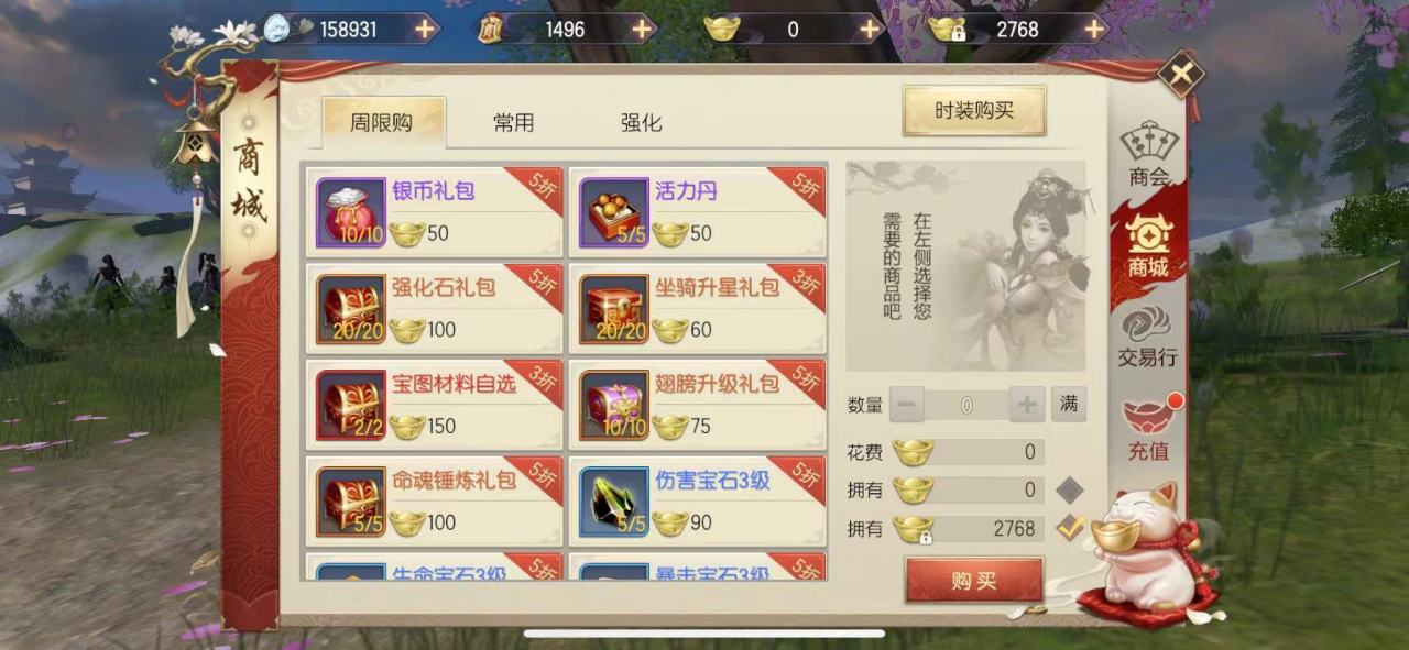 毕竟作为一款角色培养类游戏,如果玩家没有一个拿得出手的装备,那么对于玩家的升级以及刷图来说就会非常费劲。在获取到一件趁手的装备之后,小编也是建议大家去拿这些元宝购买商城里面的限时打折物品,有一些比较好的武器、宠物都是可以通过元宝去购买的,不过并不是什么时候都能买,各位玩家也是要时刻关注游戏内的资讯,等到自己喜欢的装备或者宠物上线的时候就赶紧入手。
