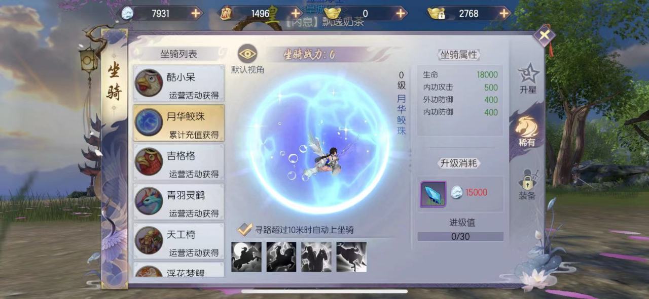2021年06月16日 16:06 来源:晚晚茶烈火如歌手游鲛珠坐骑怎么获得?在烈火如歌手游内坐骑可是一个非常重要的存在,大家试想一下,像这种网游类型的游戏,地图真的很大,如果没有一个合适的坐骑,光靠一双腿去跑路,那么做任务该有多慢啊,而且最主要的是,一个好的坐骑也能为玩家提升很高的战力。