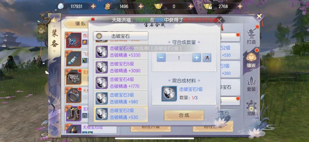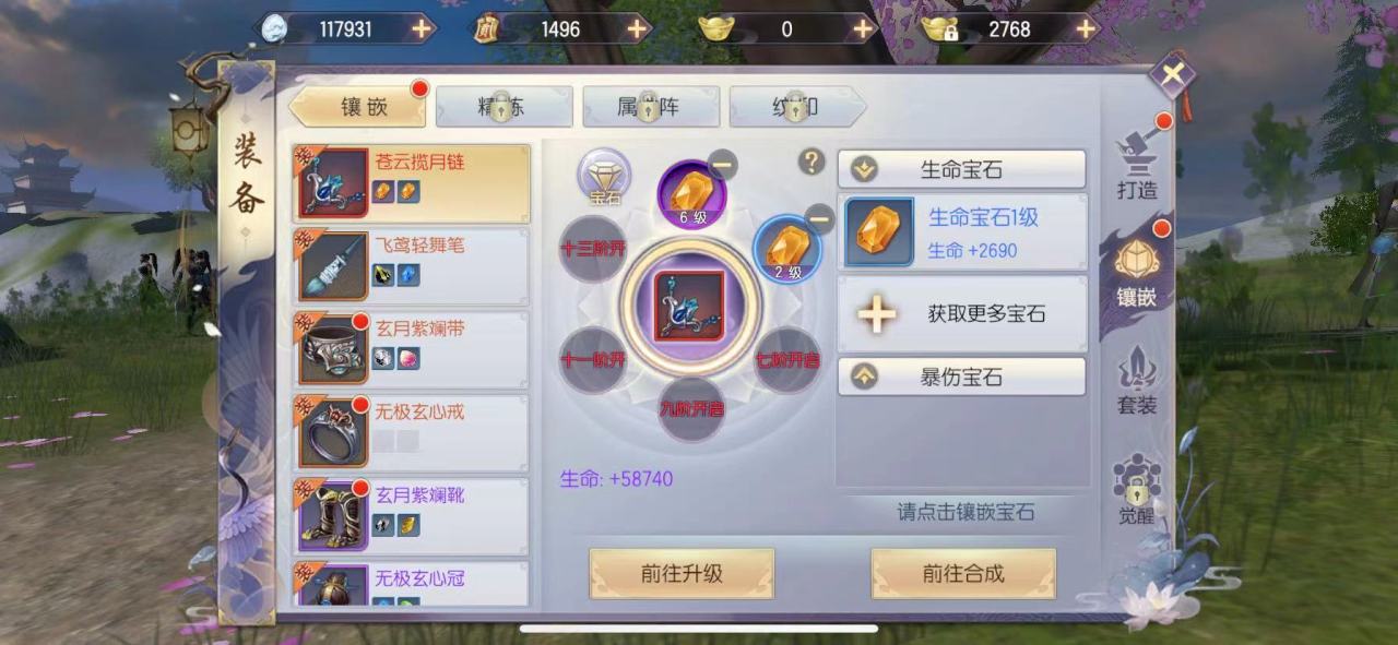 不同的装备所镶嵌的宝石都是不一样的,例如这个项链,它能镶嵌的就是生命宝石以及爆伤宝石。装备的等级越高,所能镶嵌宝石的数量就会越多,等到玩家给装备开到满级时,一个装备最少也是可以镶嵌6块宝石了,而且这些宝石也都是有级别之分的,级别越高所能为玩家提供的加成就会越多。