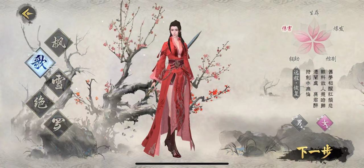 截止到目前为止,烈火如歌手游内一共有五种职业可供玩家选择,分别是雪、歌、枫、绝、罗,这五个职业都是各有各的特色,下面小编就一一给大家做个讲解。