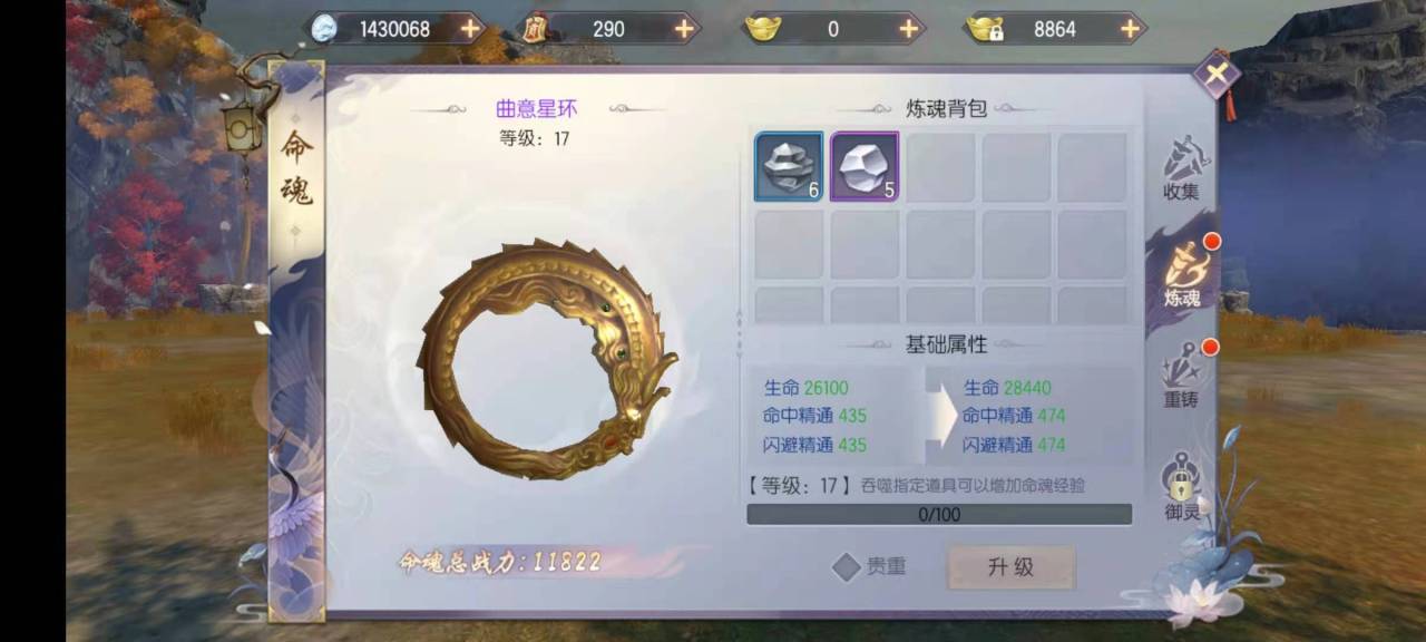 如果我们使用的不是以上这几种命魂也没关系,大家只要把握好顺序就是攻击力>命中值>生命值>物理防御和法术防御>暴击精通>闪避属性等。锤炼命魂需要的锤炼石还可以在幸运抽奖中获得,还有就是侠义任务给予的侠义任务盒子,其中也有几率能开出锤炼石来。