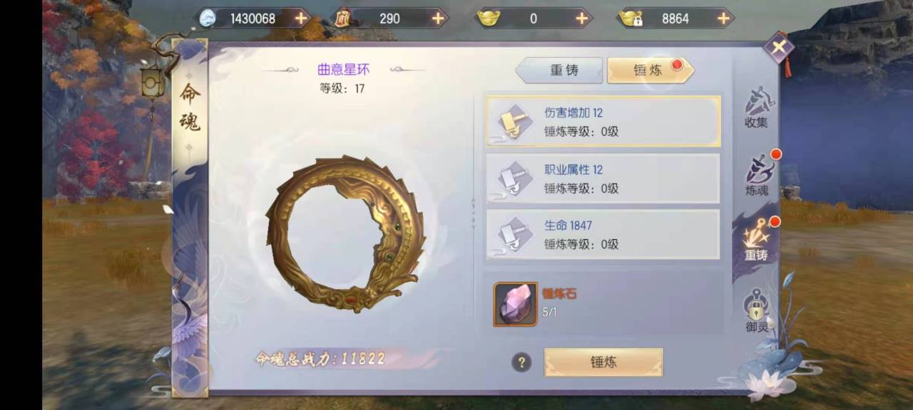 命魂在获得之后,附带的技能就已经确定了,但是属性还是可以进行锤炼的,点击想要培养的命魂,在列表的右边可以看到炼魂和重铸两个选项,点击重铸进去之后就可以看到锤炼的选项了。锤炼和重铸不同的地方在于,重铸是改变命魂的属性,而锤炼是提升已经确定的某项属性的数值。