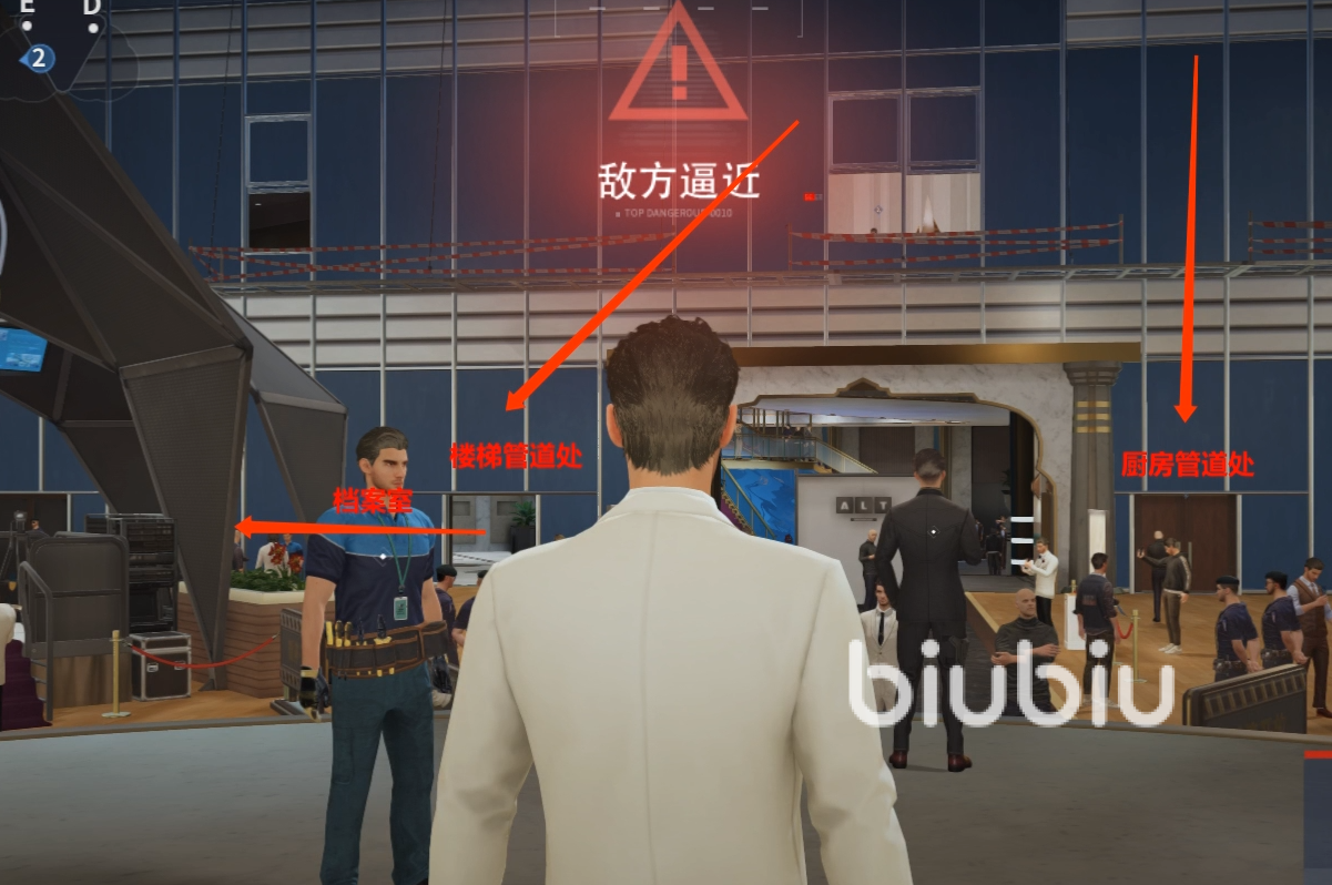 这两个路线都是非常好的隐蔽地点,大家注意不要找到很空旷的地方,这里通常都是追击者以及潜入方纠缠的地方。然后尽量选择档案室这些地方,如果队友在这些地方倒地的话,你可以去那里进行援救,然后也能够帮助队友破解各种装置。