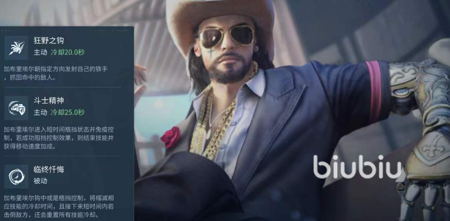 这是一个很好用的辅助角色,如果他对别人造成伤害的话,则可以不断的减少他的技能冷却时间。一技能则可以释放一个钩子,然后对敌人造成伤害的同时并眩晕,类似于机器人的钩子,可以将对手拽到自己面前。大招开启可以形成防御状态,无视对手的各种debuff。另外能够无视强开控制,并且自身也不会位移。