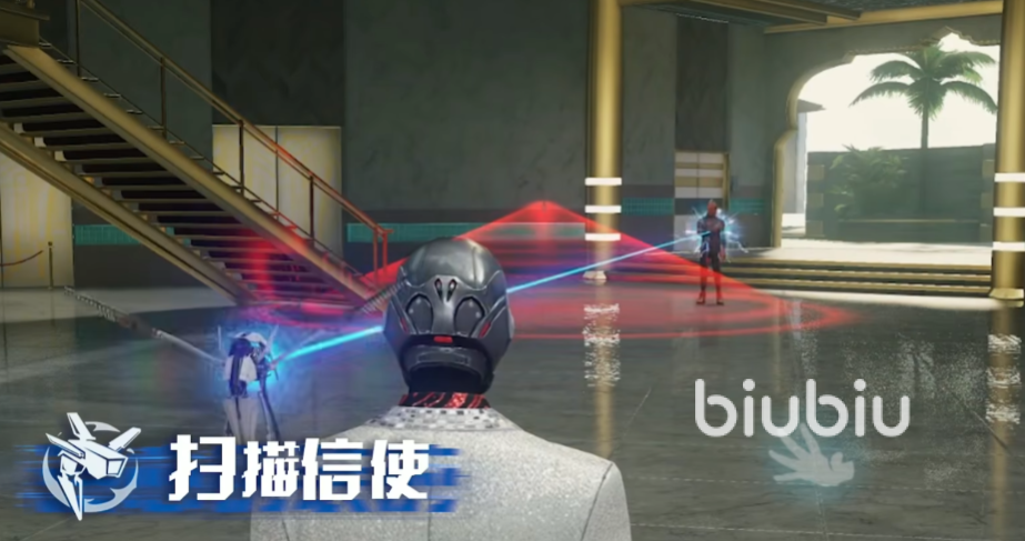 即便对方离开了这个区域,在之后的六秒时间内依旧会被锁定位置。这个技能还是可以进一步强化的,这就需要用到另一个叫做扫描信使的技能了,此能力的效果是角色将其放到对应的位置,然后会直接定位敌方人员。