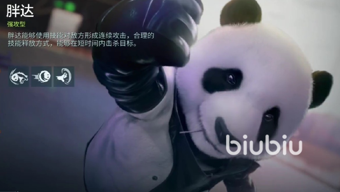 接下来,这位可能是不少玩家们比较喜欢的角色,我们的胖达熊猫人。拥有范围性的攻击能力 能够释放技能,延续对敌人进行攻击,能够短时间内将敌人快速击倒。虽然看起来蠢萌蠢萌的,但实际上威胁度非常高。他的被动技能可以使他的攻击不需要指定目标,只要目标在攻击范围内,攻击都会受到伤害。