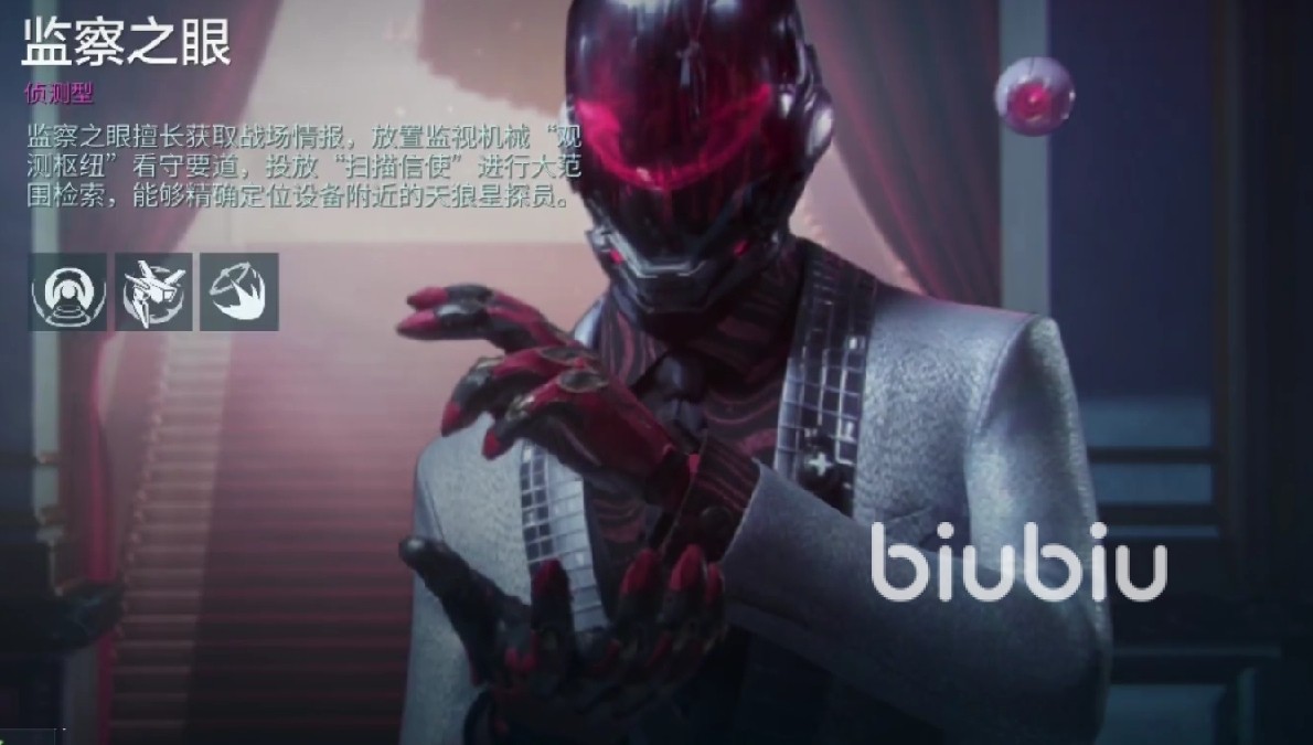 如果说上面两位还是以信息收集为主的话,那么这位便是我们的强攻型角色,以快速且致命的追击能力而闻名。拥有着非常强大的位移和追击技能,擅长于在发现敌人之后快速进行正面追击,且灵活的穿梭不同区域。