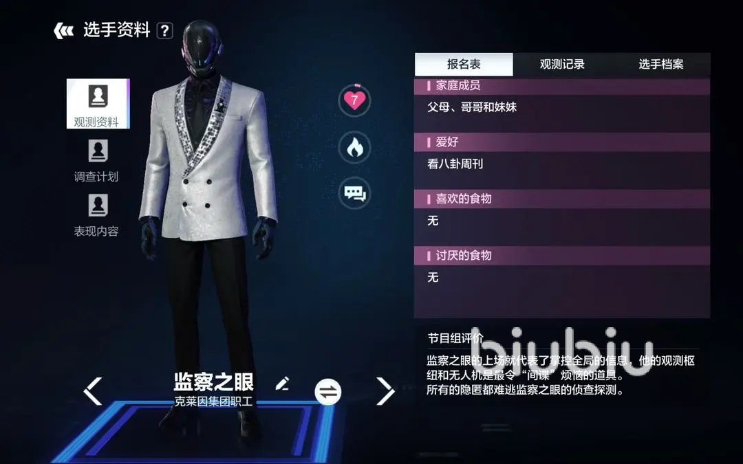 游戏当中区分为了两个不同的阵营,一个是潜行者的阵营,也就是间谍的那一方,另一个阵营是追击者;追击者是基因被改造过的很强大的人类,他们需要对关键的地区进行守卫,以武力等方式阻止潜行者潜入到他们的行动当中,同时还需要将人群当中伪装成各种职业的潜行者给分辨出来,同时需要追击到他们,毕竟打倒对手,然后完成防守工作。