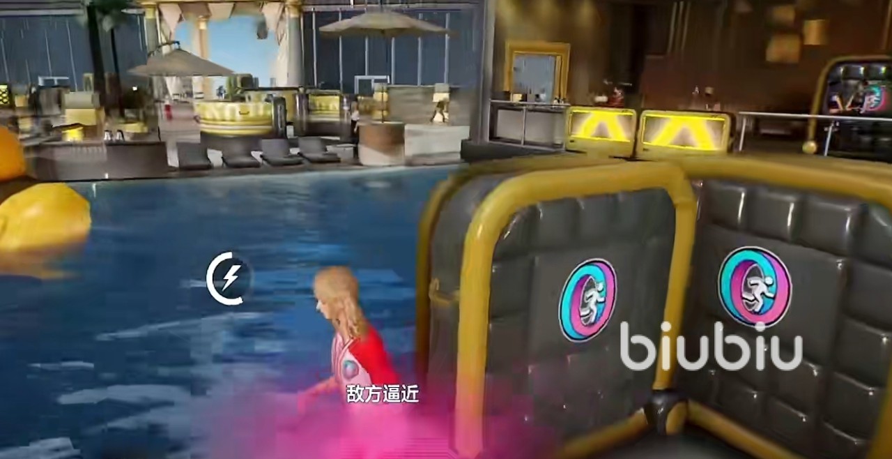 另外,切记不要跟对面在大范围区域内进行斡旋。比如中间有着巨大泳池,空地无法直接前往,需要环绕泳池进行跑路的路段。双方都很清楚对面的位置,但因为中间有巨大的障碍物,使得无法快速直线接近,而需要不断的绕圈圈。如果刚好该场景内还有着,窗户门之类的应用道具的话,那么,即便技术再好的追击者也很难快速将潜伏者拿下。面对这种情况,要不把这个点放掉,要不紧急呼叫队友前来支援,两个人追一个人,才能快速的拿下角色。