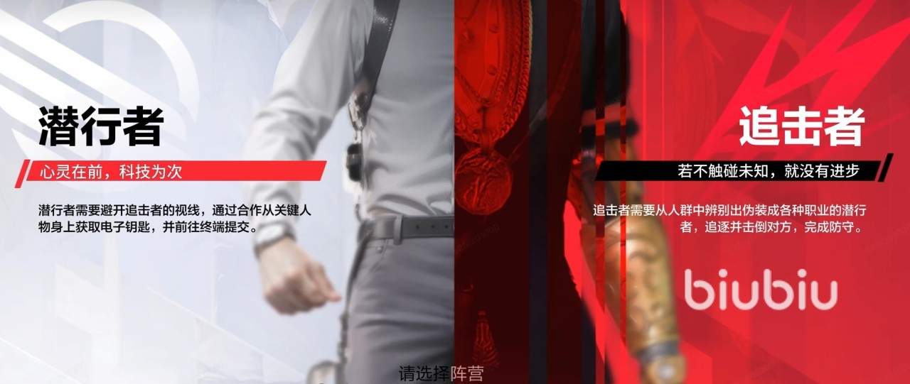 在本次任务当中,各位将分为两个阵营来参与游戏当中的各个任务与活动。分别为潜行者和追击者,参与场紧张刺激的4v2不对抗游戏,在规定的时间内,直到有一方取得胜利而结束。
