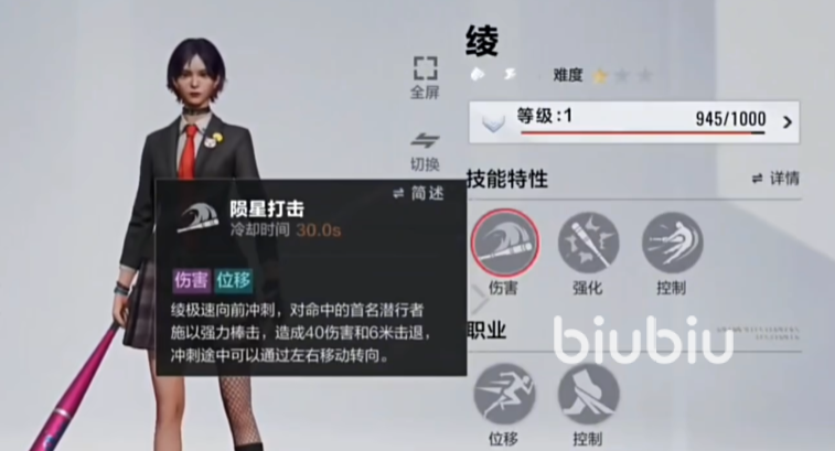 叛逆少女“绫”,是一个强攻型的追击者,简单说就是偏向于打伤害,技能也多以造成伤害为主,看似天真烂漫的她时长暴走,最喜欢挥舞着手中的棒球棍来痛击对手。