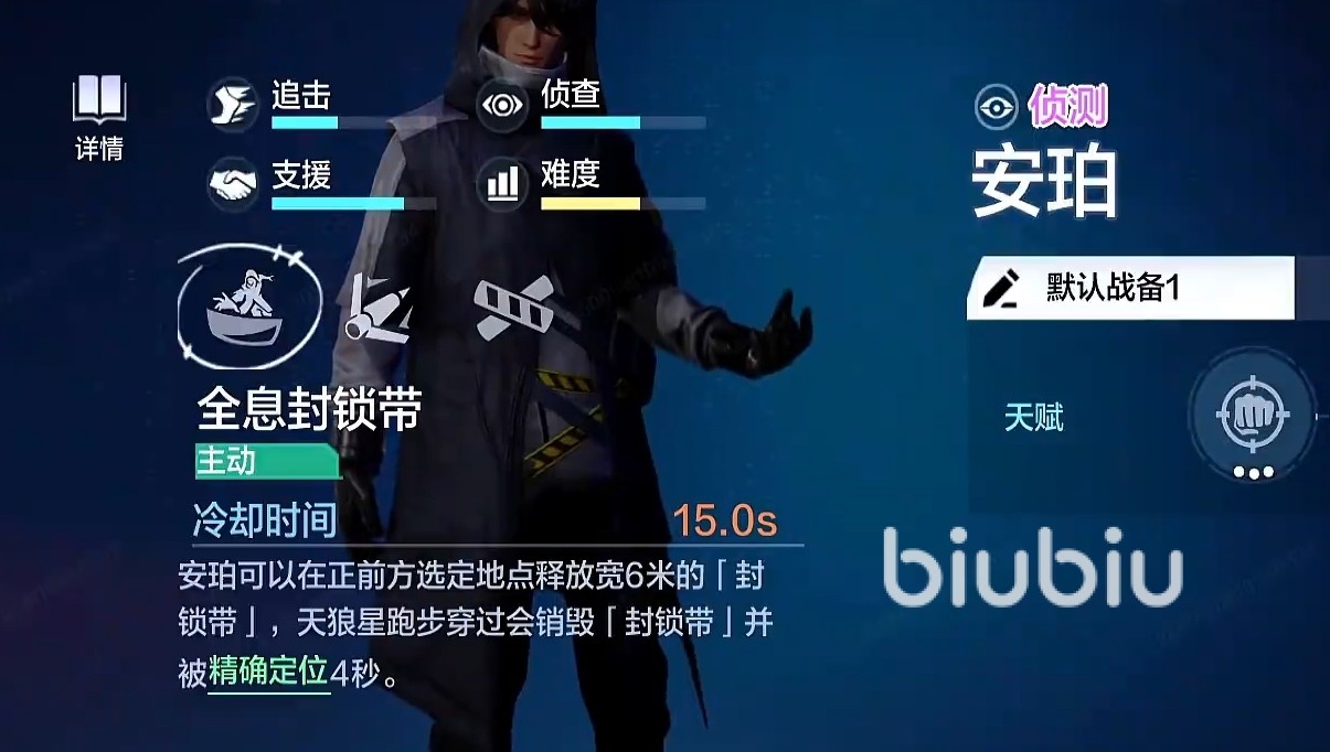 角色的实战强度很高,但也并不是说完全就没有应对方法,他的一技能封锁带在放置的时候,如果敌人不跑动,而是采用一个慢走伪装状态下穿过的话,那么则不会被触发警报精准封锁。但这一定程度上也延缓了天狼星行动的速度和活动的轨迹,使得我们能够更加精确的对目标进行一个延迟抓捕。