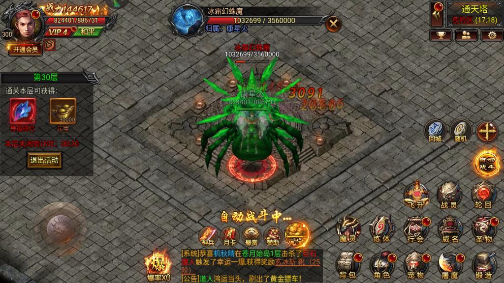 通过迷宫之后就可以来到伏魔殿了,这里每过五分钟会进行一次怪物刷新,能够让玩家体验到打宝的游戏乐趣。