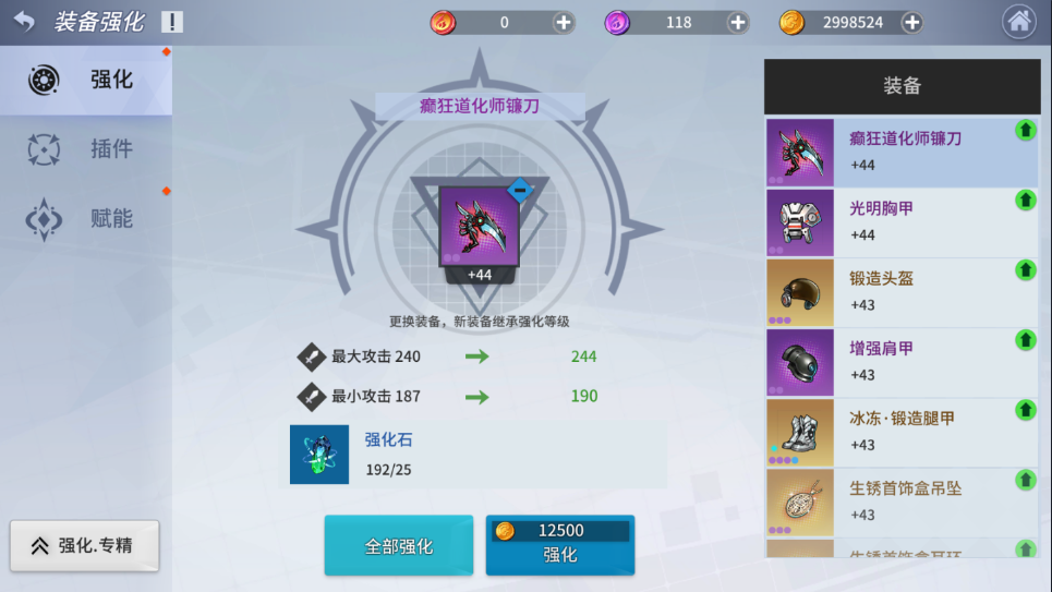(2)插件:可以嵌入装备插槽,提升装备属性;插件可以通过每日副本,竞技等途径获得。