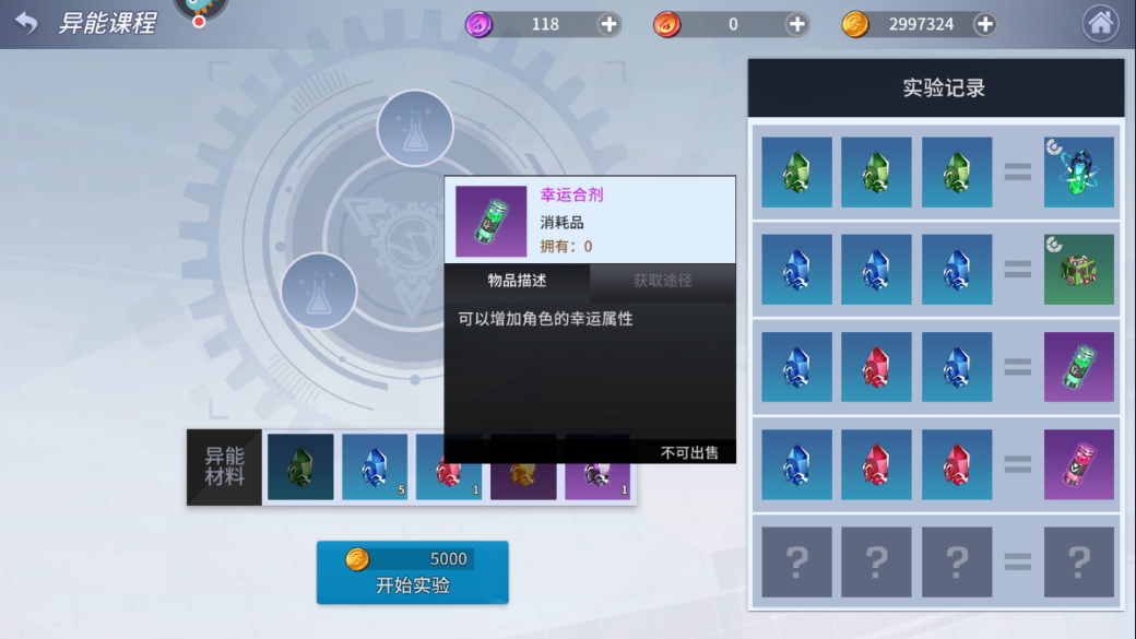 (1)异能晶体:异能晶体是异能实验中的一种素材,一块蕴含能量的神秘晶体。该素材一共有五个种类分别是绿色异能晶体、蓝色异能晶体、红色异能晶体、黄色异能晶体、黑色异能晶体。