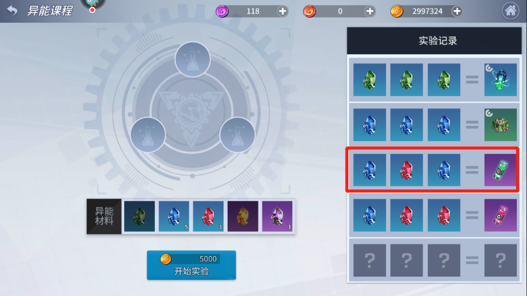 (2)合成配方:蓝色异能晶体+红色异能晶体+蓝色异能晶体。