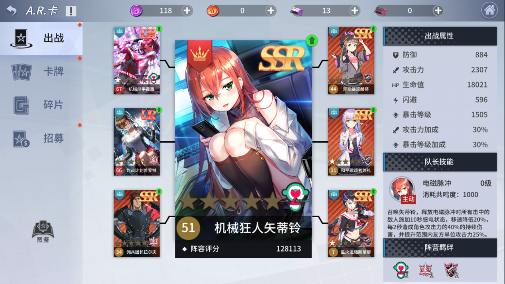 (3)队员卡:同时可以上阵6张,队员卡稀有度提升至SSR时可以提供额外的属性加成。上阵的A.R.卡可以提供属性加成。