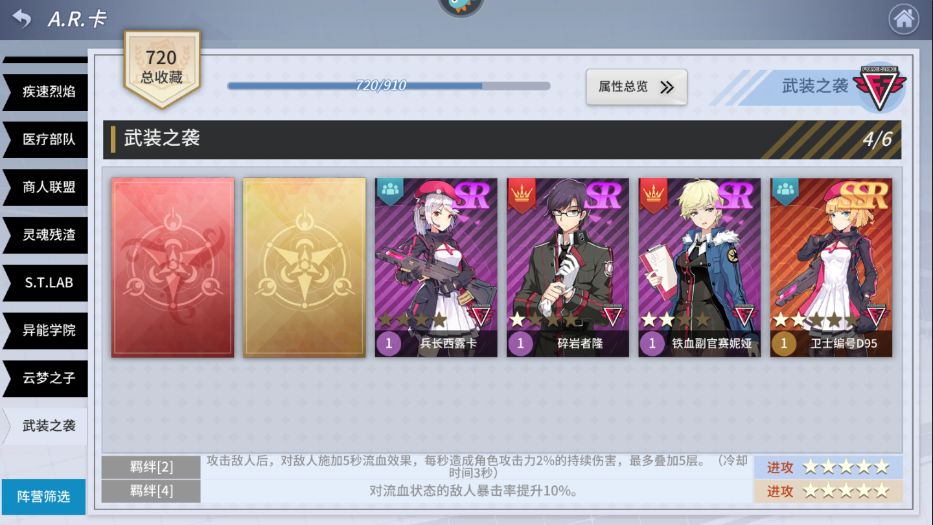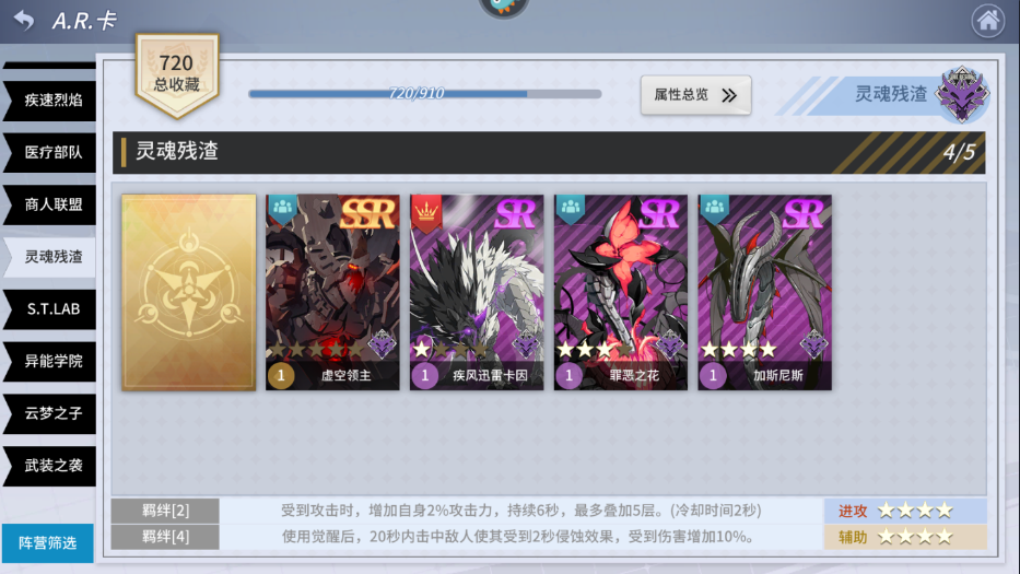 (3)推荐羁绊组合2:4个武装、2个灵魂、1个强度卡牌。
