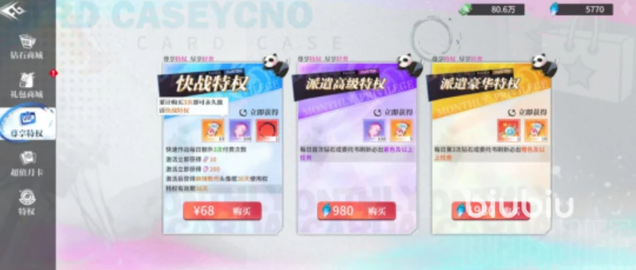 还有比较推荐购买的东西是派遣高级特权以及豪华特权,这两个东西购买以后虽然不赠送任何的资源,但是可以提高刷新的品质,很容易刷出紫色或者橙色的物品,这样就能偶尔获得便宜的高级招募券哦!
