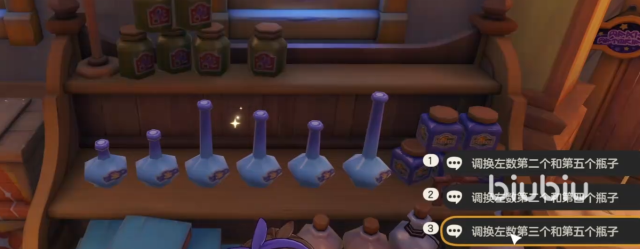 首先是通过幻影巫秘境,幻影巫秘境入口在可可果街的安妮商店内,进入店铺之后需要玩家与柜台上的玻璃瓶进行互动,将其按照高度来由低至高依次排列,这里记得选对话框中的第三项,就可以开启传送门。