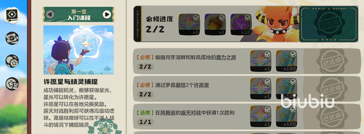 在完成主线的过程中,玩家们需要打开魔法手册,这个就是类似新手阶段的成就任务,这些任务的完成难度很低,但是能获取的奖励非常丰富,建议玩家们可以根据手册的成就一一完成,其中捕捉宠物这个成就是比较多的,建议玩家们看到没有捕捉过的宠物都需要第一时间捕捉,捕捉以后会获得较高的经验成长,还能丰富图鉴组成阵容,在前中期捕捉宠物是非常有必要的,其中罗隐捕捉优先级较高,因为该精灵的数值比较高,是后期攻坚pve副本的神宠。