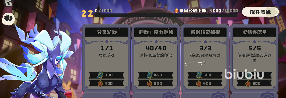 在完成主线任务的同时,还有几个提升经验的重要渠道,首先就是通行证,通行证是分为每周任务的,而这里面的任务基本上都是基础的任务,包括打首领怪物,完成npc的委托等等,基本上十分钟以内就能全部完成,大概需要玩家们每天都要登录完成,这样后续提升等级的速度会快很多。
