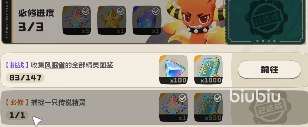 接下来咱们在第七章的魔法手册里面便可以看到关于翼王的专属任务,这个任务总共是三个阶段,从目前来看每一个阶段的任务难度都不算低,咱们需要提前充分的准备好才可以。这里面最难的就是捕捉传说精灵。