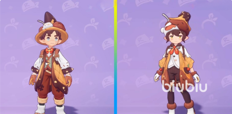 第二类是精灵服装,这里套装也比较多,亲子巧克力套装,能将角色与精灵形成完美融合,有些亲子套装是需要付费才能解锁的,这些服装朋友们就根据个人需求购买吧,毕竟售价也不一;它们都有丢球特效,是比较顶级的皮肤。