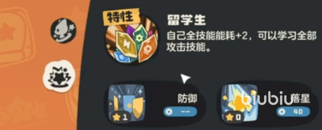 学院呱呱基础的技能有落星、寸拳、气波、防御技。落星属于物理伤害技能,输出用;寸拳是十分实用的技能,既能造成伤害又能回血给学院呱呱1点能量,在高能量消耗时尤为关键;气波属于魔法攻击技能,可以弥补物理攻击的不足,防御技能能减少70%的伤害,在危急时刻能扭转局势。