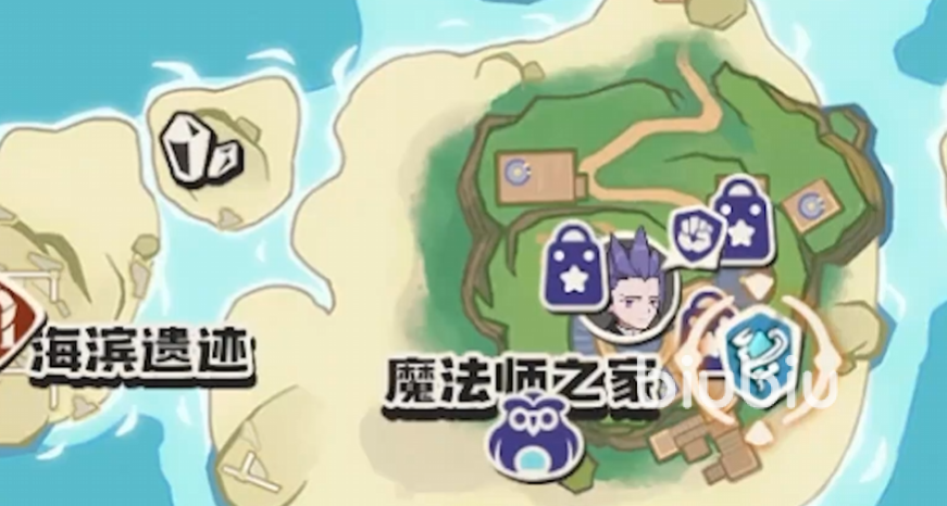 首先了解下污染海枝枝的出现地点,要刷精灵的位置,位于地图左下角新手村的左侧群岛上的海滨遗迹,可以直接从沙滩上的大型眠枭庇护所出发,先一路朝着西边方向走,看到海滩之后还是继续向西前进。