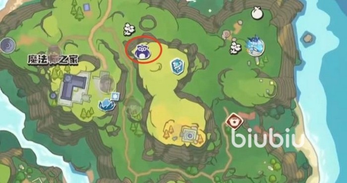 还有一种是“高山地”的样貌,这种看上去更凶猛,位于魔法师之家右侧的“眠枭庇护所”,将精灵果实放在附近就可以吸引到精灵来这里栖息,便有机会获取这些精灵。