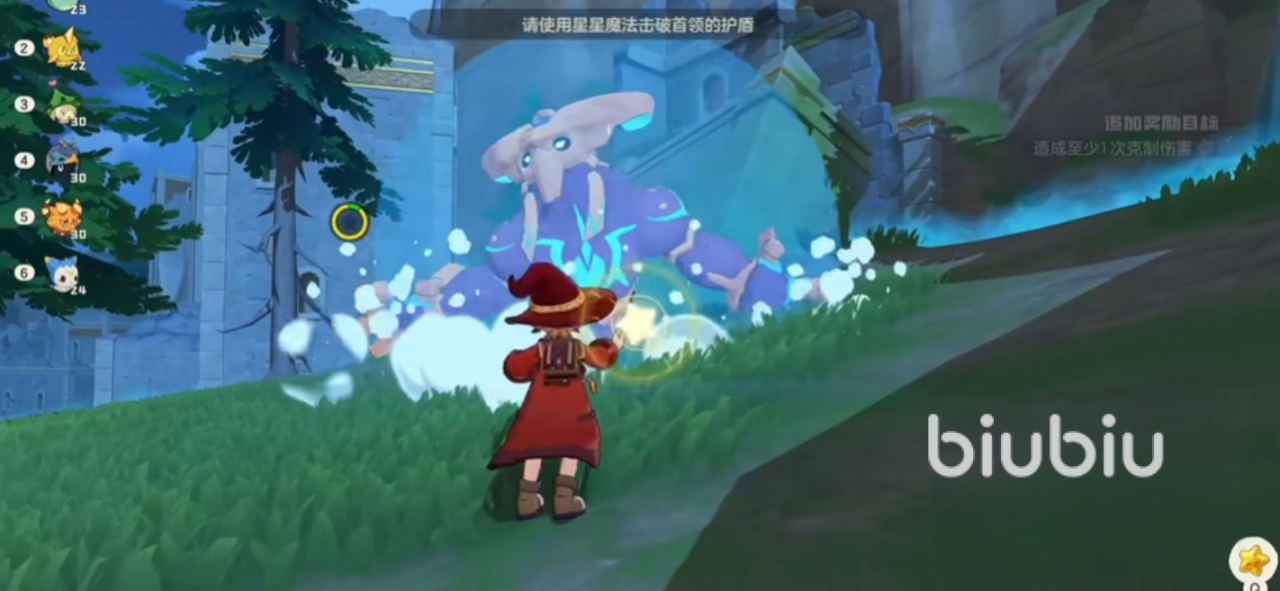 废墟圣所上方可以找到布莱克,它的挑战开场非常有压迫感,会高速直线冲撞玩家,还有招牌技能山崩地裂,经过它的地方地面会不断凸起锋利地刺,对玩家造成伤害和干扰。躲避地刺的核心就是准确的跳跃。成功击破其护盾之后进入第二阶段,这时布莱克会得到增益效果,战斗强度提高。优先选用魔法攻击型精灵,草系精灵对它的属性克制作用明显,可以更快地消耗掉它的血量。