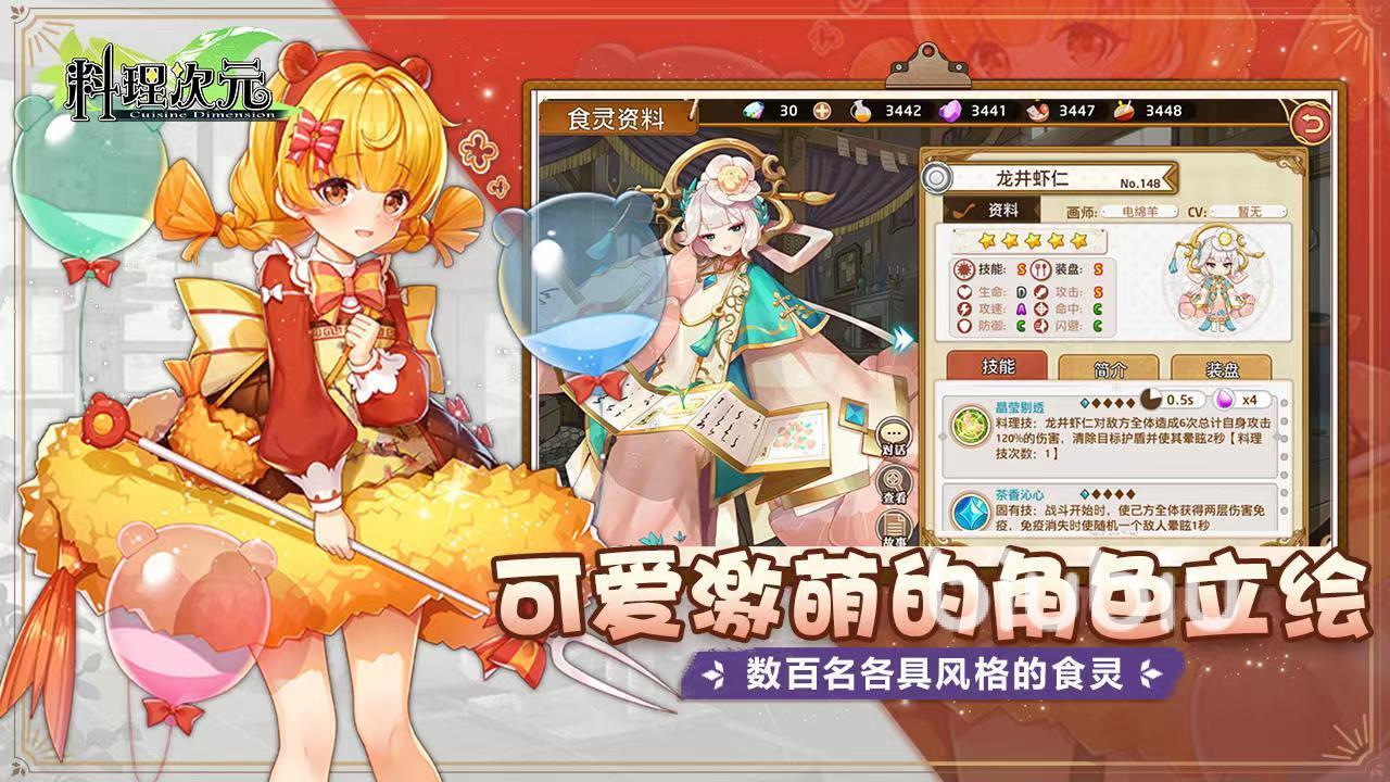 游戏中,作为吃货的玩家意外穿越到了料理次元异世界,将会跟随很多食灵小姐姐们一起揭开这个世界隐藏的秘密。因为料理次元已经被黑暗吞噬,作为主厨的玩家要担当起拯救世界的重任,通过研究各种料理来唤醒这些食灵角色,和她们一起进行战斗,进而拯救世界。收集食灵的方式非常多,可以跟随主线剧情收集,也可以在野外探险时候偶遇,还能够通过烹饪来唤醒或者是交易来获得。召唤到这些食灵之后,就可以将她们加入进战队中,游戏中的风格非常治愈,但是战斗场景却很重视策略玩法。无论是在前期装盘布阵还是战斗过程中独特自走棋玩法,都需要大家根据食灵特点进行合理安排,选择正确路线,才能快速完成进化战斗。搭配食灵的还有各种料理,技能装备和酱料等,这些也都需要大家精心去选择。