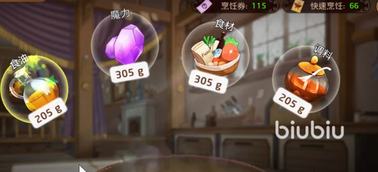接下来为大家介绍的是通用公式,通用公式是400,600,600,400。这个数据是按照食油,魔力,食材和调料的顺序来排列的。这个公式之所以被称为通用公式,具体原因则是因为所有的食灵都是可以通过这个公式来获取到。而且这个公式里面所出的绝大部分情况下是不会有二星食灵的,最低都是三星。这也是比较划算的一个公式。但是缺点也很明显,因为所有的食灵都有可能通过这个公式制作出来,所以如果是想定向获取食灵的话那么就尽量不要使用这个公式。