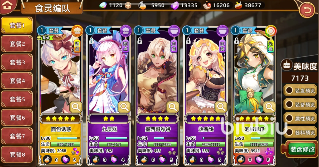 第三套的组成则有热香饼、卷饼、提拉米苏、龙须糖、凉粉,前者热香饼不仅能放在前列抗住伤害,她的装盘还可以让队伍中的甜品成员增加2次料理技次数,凉粉的料理技能对后排进行控制,提拉米苏的料理技能对随机一个后排敌人射出4箭造成很高的伤害,龙须糖的料理技能对一个后排敌人造成命中186%的真实伤害。